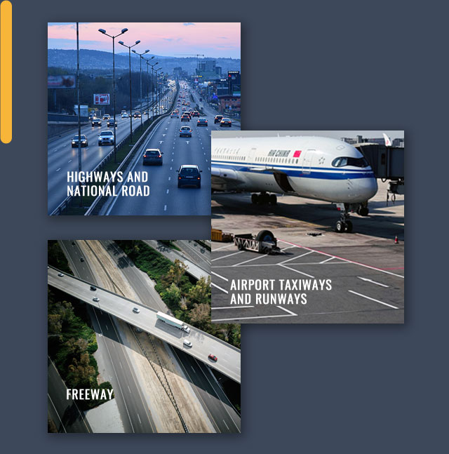 At the airport, runways and taxiways are the busiest routes of travel, where the safe movement of aircraft is of utmost importance. The WAYMARK thermoplastic road marking paint gives you opaque and precise markings on runways, taxiways, and aprons. These markings guide pilots during take-offs, landings, and taxiing, enhancing airport safety and reducing the risk of runway incursions.