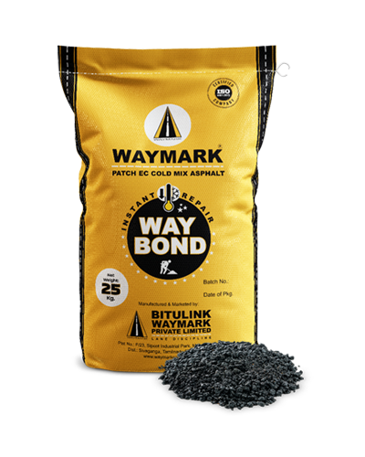This is premix/ ready-to-use Cold Mix Asphalt. Waymark Patch EC Cold Mix Asphalt is an instant repair of potholes and depressions on the roads. Unlike hot mix asphalt, cold asphalt mix does not require any heating of aggregate, which makes it economical and relatively pollution-free.