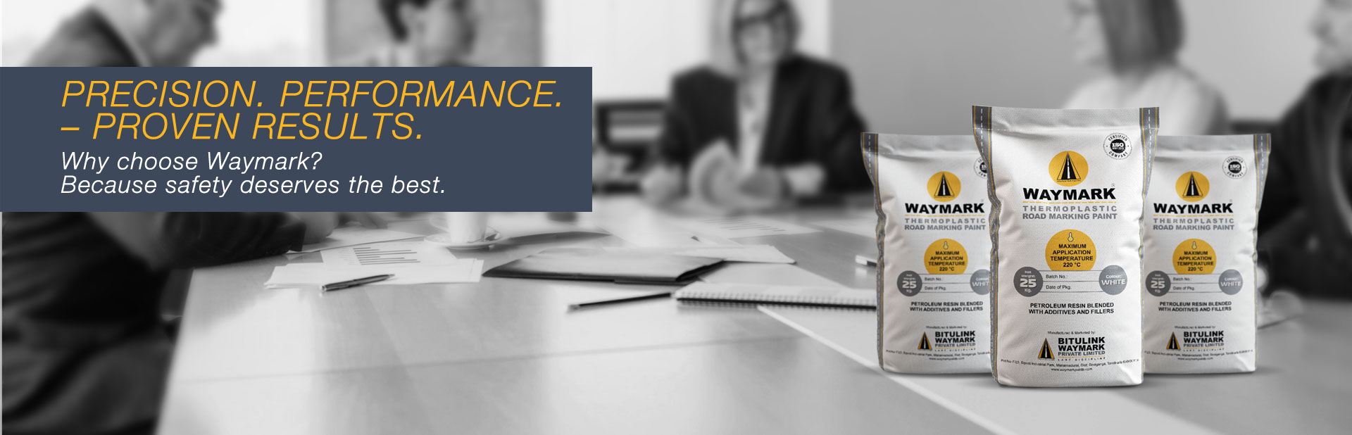 Bitulink Waymark Pvt. Ltd. is a leading manufacturer and marketer of WAYMARK high-performance thermoplastic road marking paint and WAYMARK Cold Mix Asphalt. Headquartered in Belgaum, India, Bitulink WAYMARK serves infrastructure development across the region with innovative, dependable solutions for road construction, instant road repair, and surface marking.
